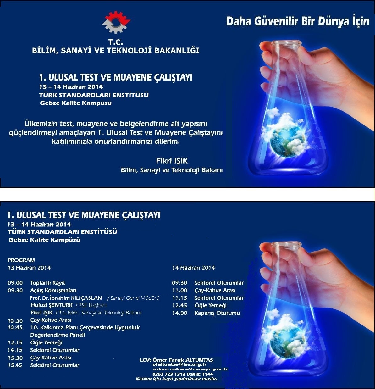 13-14 Haziran 2014 tarihleri arasında, TSE Gebze Kalite Kampüsünde T.C. Bilim, Sanayi ve Teknoloji Bakanımız Sn. Fikri IŞIK’ın teşrifleriyle I. Ulusal Test ve Muayene Çalıştayı düzenlenecektir. Türkiye’nin en büyük uygunluk değerlendirme merkezi olan TSE Gebze Kalite Kampüsü’nde ülkemizin uygunluk değerlendirme altyapısının ortaya çıkarılması, eksik ve güçlü yanlarının tespit edilmesi, bu alandaki mükerrer yatırımların önlenmesi, sanayicimizin bu alandaki ihtiyaçlarının belirlenmesi ve giderilmesi için gerekli hamle ve yatırımların gerçekleştirilmesi başlıklarını hedefleyen 1. Ulusal Test ve Muayene Çalıştayı 14 farklı sektör oturumuyla sizlerin de katılımıyla gerçekleştirilecektir.